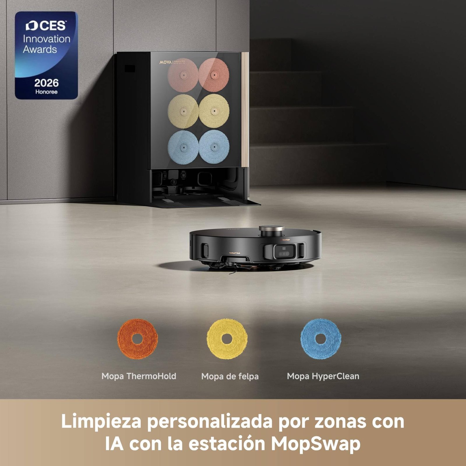 MOVA Mobius 60 robot aspirador y friegasuelos con sistema MopSwap, succión de 30000 Pa y navegación FlexScope