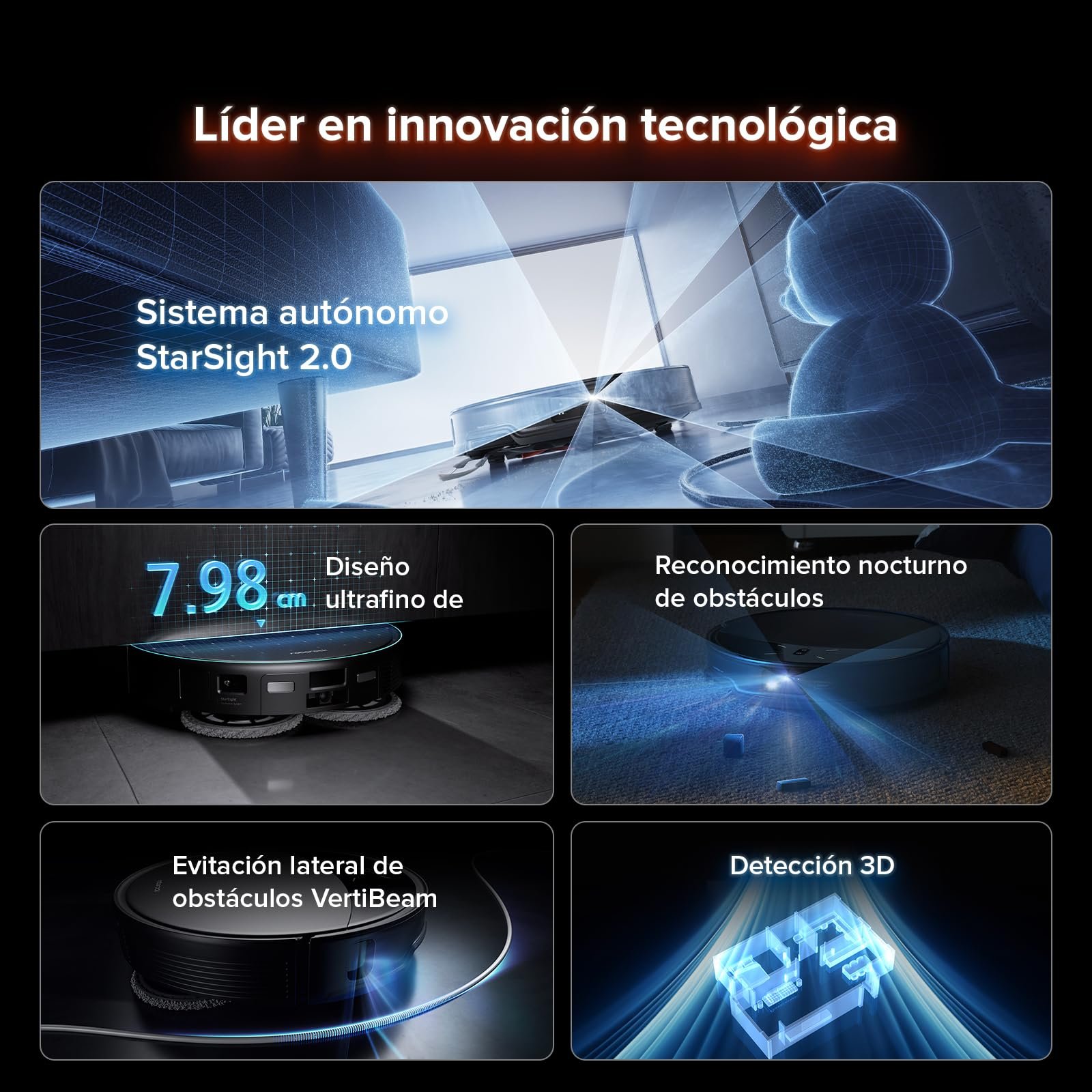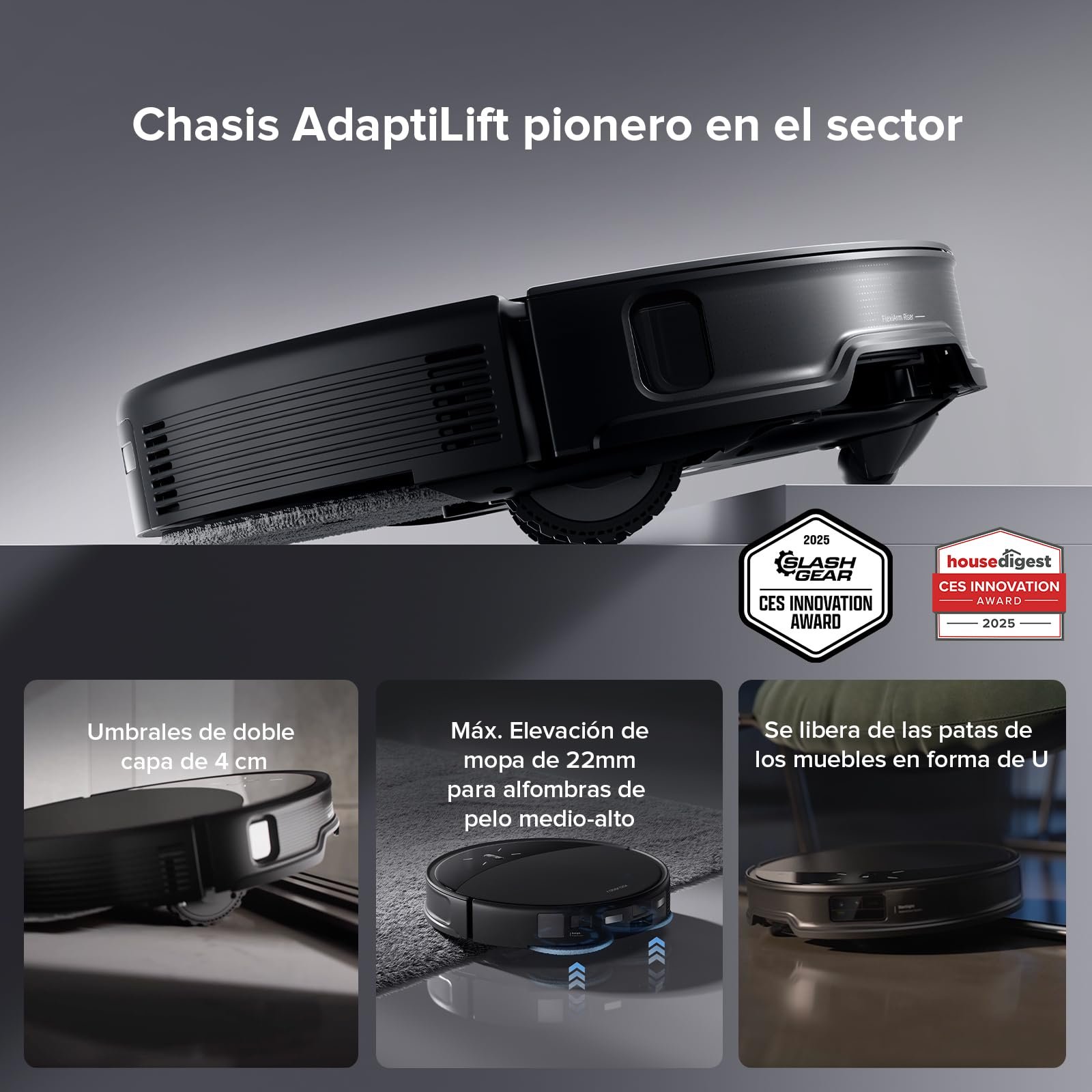 Cuenta con un cuerpo ultrafino de 7,98 cm que facilita el acceso debajo de camas, sofás y muebles bajos, permitiendo limpiar áreas difíciles con mayor comodidad. Su función de aspirado y fregado ayuda a mejorar la limpieza del suelo en distintas estancias del hogar, ofreciendo una solución práctica para el mantenimiento diario.
