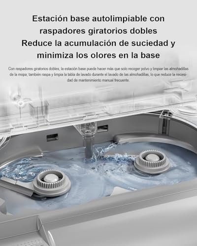 La estación base automática facilita el mantenimiento con funciones de recogida automática del polvo, lavado de mopas con agua caliente, secado rápido y autolimpieza interior. Su batería de 5200 mAh ofrece hasta 140 minutos de autonomía, y el control mediante aplicación y voz permite una experiencia de limpieza más cómoda y práctica en el hogar.